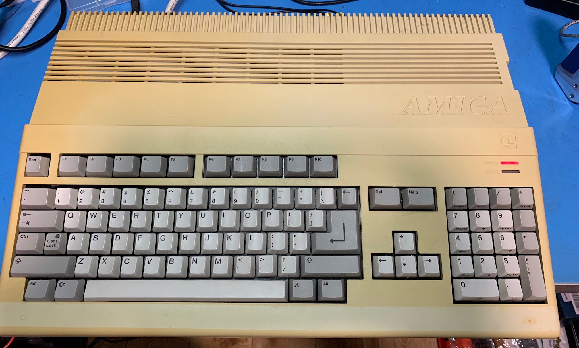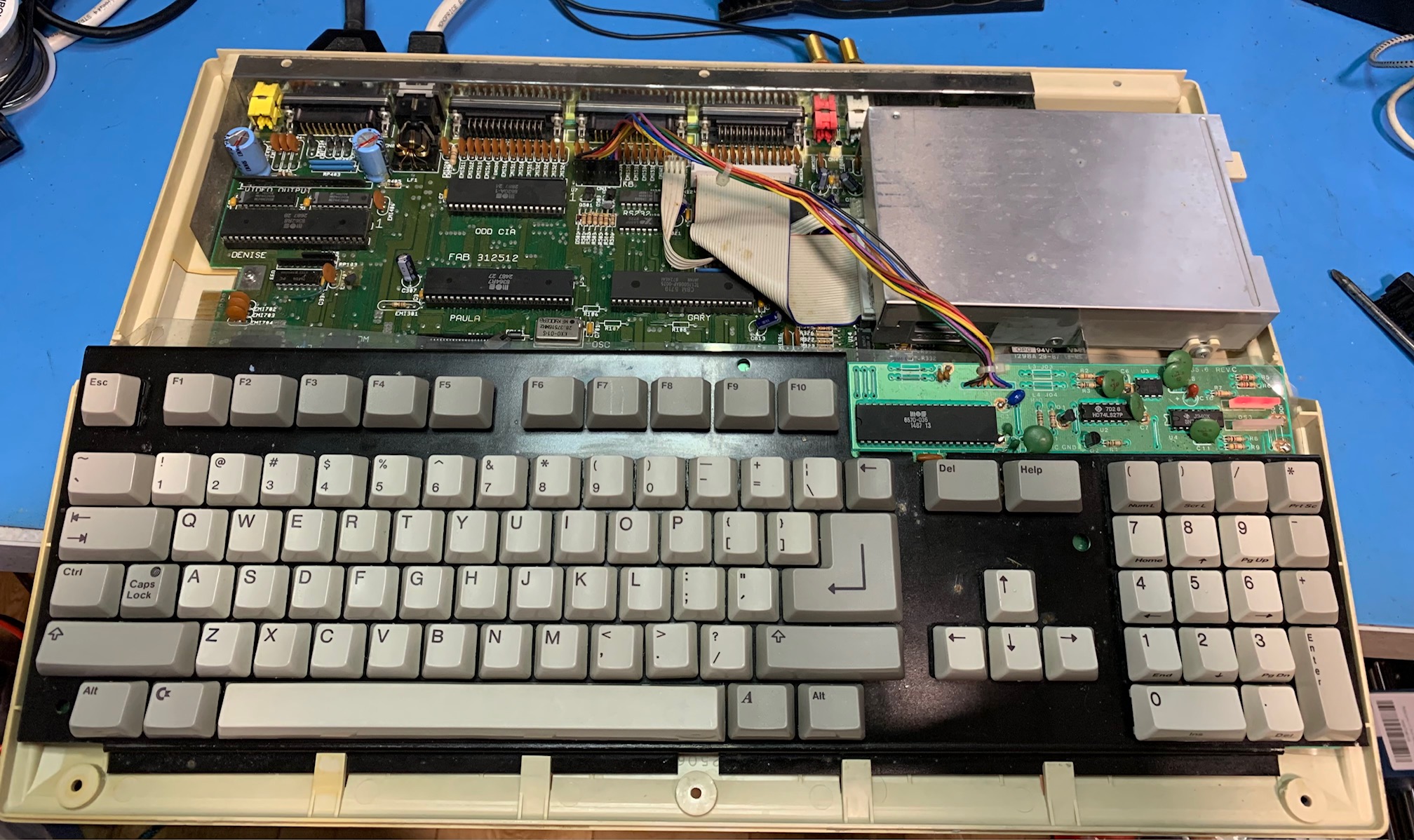 Keyboard is the chicken lips mechanical keyboard and very desirable in the Amiga community I stripped it and fully cleaned it.