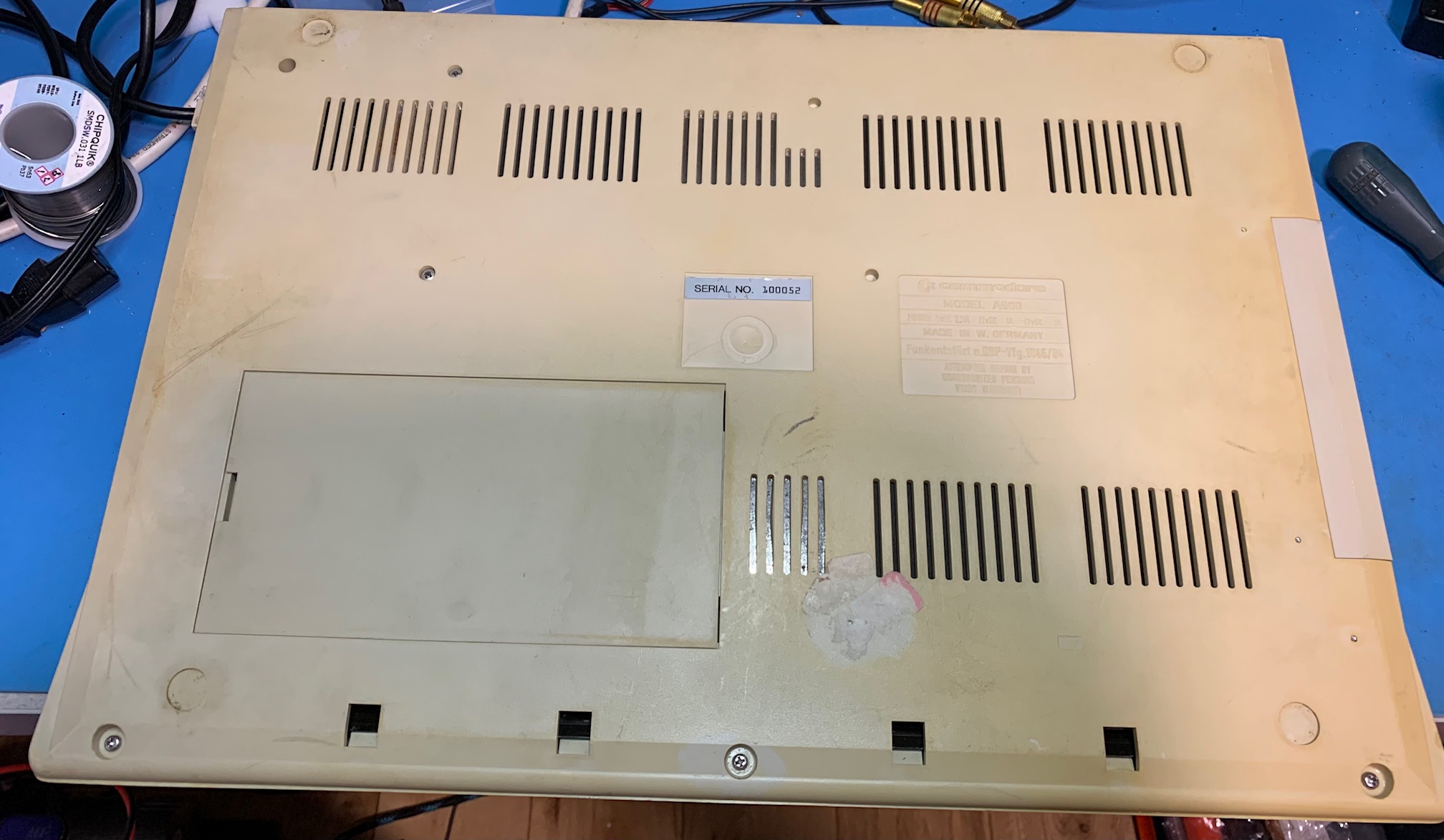 Amiga a500 early model named the chicken lips because of the keyboard having the commodore logo on it ,also the embossed logo on the case made in 1987 most chips have 24th week of that year.